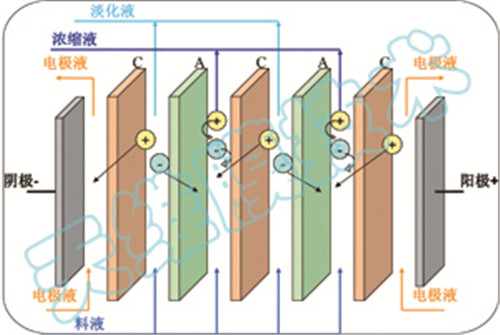 一般稱溶液離子濃度增加的隔室稱為濃縮室,其溶液稱為溶液或鹽水;溶液離子濃度降低的隔室稱為淡化室,其溶液稱為稀溶液或淡水。從而使離子得到了分離和濃縮,海水得到淡化。